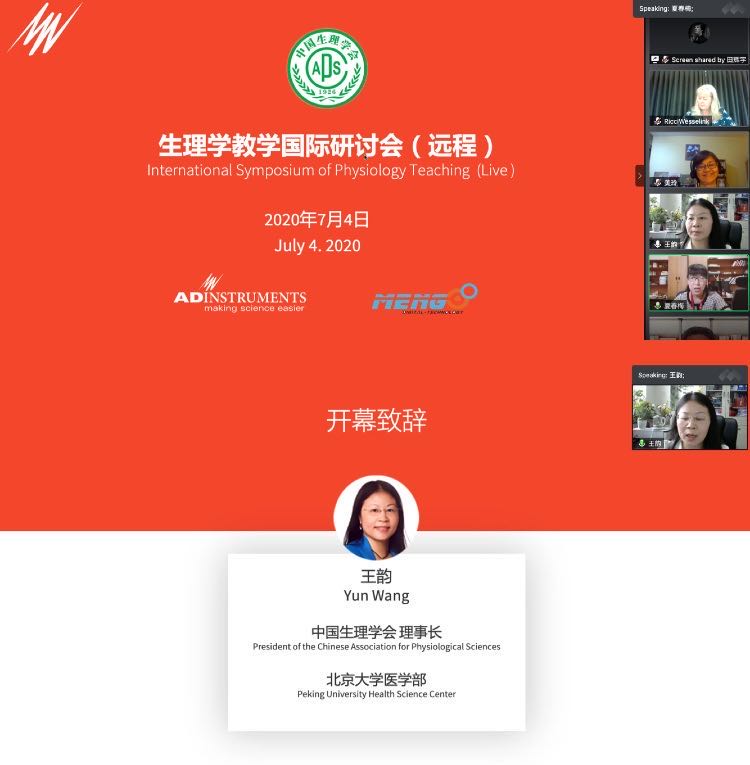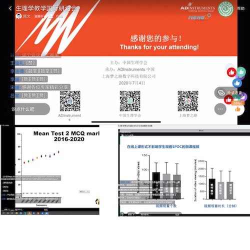 2020年7月4日,“后疫情时代的生理学教学创新与探索”为主题的生理学教学国际研讨会(远程)会议成功举办。本次会议是继首届生理学在线国际研讨会成功进行后,在后疫情时期的又一次特殊会议。会议由中国生理学会主办,ADInstruments 和上海梦之路数字科技有限公司协办,为期半天的会议,通过两个钉钉群直播,向国内外生理学教育工作者进行直播,参会人数超过700人。来自北京大学,中南大学,温州医科大学,上海交通大学,以及来自新西兰ADInstruments和怀卡托理工大学的海内外专家和同仁围绕会议主题分享各自的教学经验。