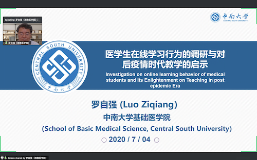 随后,中国生理学会副理事长,中南大学罗自强教授作为多个国家级和省级精品课程的负责人,探讨了医学生在线学习行为的调研与教学反思。通过在线课堂教学过程的组织,学生在线学习行为,对疫情后教学的思考三个方面介绍了目前正在开展的 SPOC 和在线翻转课堂,力求让每位学生明确学习任务和目标,从而提高教学针对性。