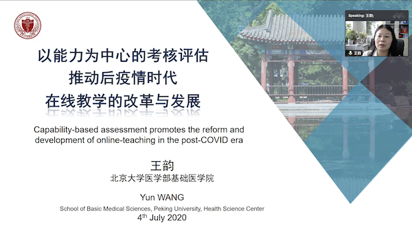 随后,王韵教授以“以能力为中心的考核评估推动后疫情时代在线教学的改革与发展”为主题正式拉开了本次会议的演讲报告。从以往常规教学、到疫情初始应对、再到目前后疫情时期不断完善,学院和学科遵循“以学生为中心”的理念,以“促进学习效果”为目标,强调了包括生理教学在内的全部教学,从线下传统授课转移到线上教学的经验与启示。分享了北京大学基础医学院以能力为核心的考核评估体系对学生学习的促进效果,尤其是在线理论课程考核——教学考三位一体,以能力为中心贯穿始终对学生自主学习能力的培养及后疫情时代在线教学的启示。