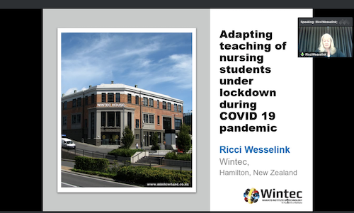 新西兰怀卡托理工大学高级讲师 Ricci Wesselink 与我们分享了“Adapting teaching of nursing students under lockdown during COVID 19 pandemic”的主题演讲。探讨了新冠疫情封锁期间怀卡托理工大学是如何适应对护理专业学生的教学,如何应用 Zoom 和 Lt 等软件开展线上实验室教学。