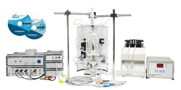Panlab 多腔室器官水浴系统将 ADInstruments PowerLab 数据采集系统, 桥式放大器, 等长传感器和 LabChart 软件与一个Panlab 器官水浴结合在一起。您可以选择 4、8 或 16 腔室和组织腔室尺寸(5、10、25 或 50 ml)。设计简洁的Panlab 器官水浴 为进行离体组织研究提供了一个可控的环境。这种配置也为记录和分析离体组织实验的数据提供了所有必要条件。配备组织固定钩和夹子,还可以研究离体组织环或其他管状结构。 |