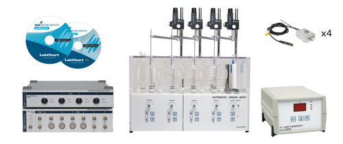 Panlab 多腔室器官水浴系统将 ADInstruments PowerLab 数据采集系统, 桥式放大器, 等长传感器和 LabChart 软件与一个Panlab 器官水浴结合在一起。您可以选择 4、8 或 16 腔室和组织腔室尺寸(5、10、25 或 50 ml)。设计简洁的Panlab 器官水浴 为进行离体组织研究提供了一个可控的环境。这种配置也为记录和分析离体组织实验的数据提供了所有必要条件。配备组织固定钩和夹子,还可以研究离体组织环或其他管状结构。 |