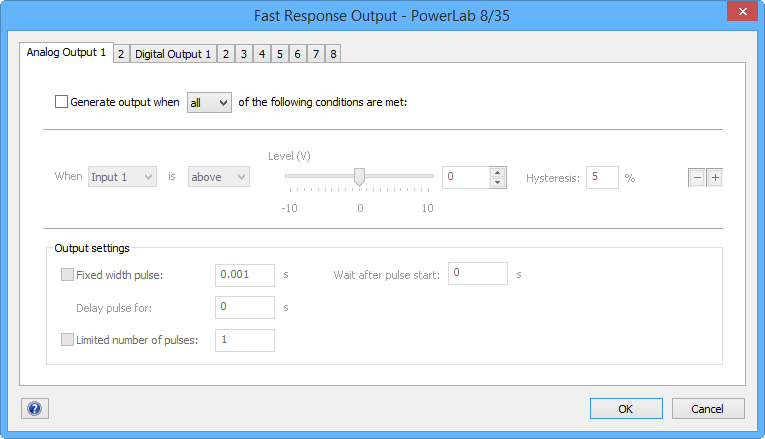 快速响应输出 产品代码 FASTRESPO LabChart 的快速响应输出模块插件允许您控制受支持的 PowerLab 单元的数字输出和模拟输出。 Download Software Fast Response Output 1.3 for Windows Fast Response Output 1.2 for Mac 数量 报价请求 Book a demo 概览 支持 详情和技术规格 Book a demo 概览 LabChart 的快速响应输出模块插件允许您控制 /30 和 /35 系列 PowerLab 单元的数字输出和 /20、/25 和 /30 系列 PowerLab 单元(不支持其他模型)的模拟输出,这对在 PowerLab 本身内部产生快速响应非常有用。 因为一旦输入信号到达 PowerLab,快速响应输出就会做出响应,在小于 1 毫秒的时间内产生用户定义的输出,而与计算机的速度无关。 Lab Builder – Find the right products for your research. 1Select your research area 2Use our smart guide to tell us your needs 3Get instant product recommendations Try Lab Builder 支持 支持文章 我们的支持文章包含常见问题的解答、操作方法、解决方案和文档。 What are you looking for help with? Type - 任意 - Support Article (357) Video (51) Search 详情和技术规格 技术 产品代码 Software 技术 兼容性 适用于 Windows 的 LabChart 8 勾号 适用于 Mac 的 LabChart 8 - 适用于 Mac 的 LabChart 7 勾号 产品代码 FASTRESPO 快速响应输出 Software Fast Response Output 1.3 for Windows Fast Response Output 1.2 for Mac