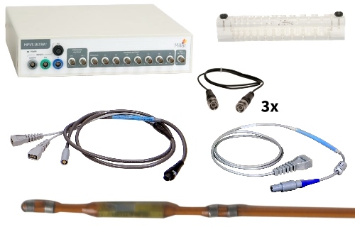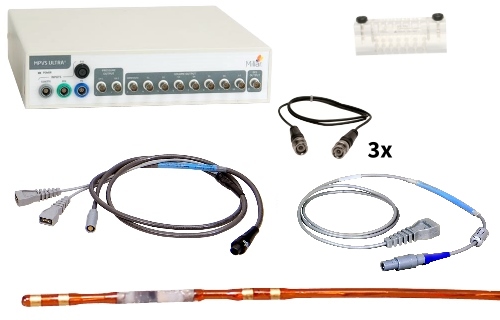 用于通过心尖穿刺法测量小鼠工作心脏实验的左心室压力容积。包括一个 MPVS-Ultra 单节压力容积单位、 容积校准定标管(小鼠 PV 导管)、 MPVS-Ultra 单节电线套件 和 小鼠 PV 导管(1F、4E、3.5mm、4.5cm、PI、不可维修)。不包括心尖穿刺针。