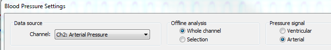 就像“舒张末期”和“Tau拟合选项”只在心室模式下可用,而“博切迹”只在动脉模式下可用——出于明显的原因——一些计算参数也是如此。完整的心室和动脉参数列表和描述可以在LabChart的帮助文档“血压>血压参数”中找到。